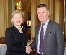 The Belgian minister of External Affairs Karel De Gucht, met the American State- Secretary Hillary Clinton in March 2009. Belgium is seated along with the US in the VN-Human Rights Council after De Gucht said he was prepared, along with other European countries, to ‘take on’ Guantanamo-prisoners.