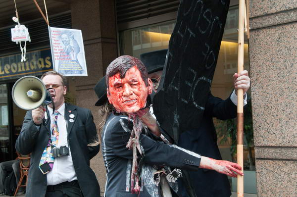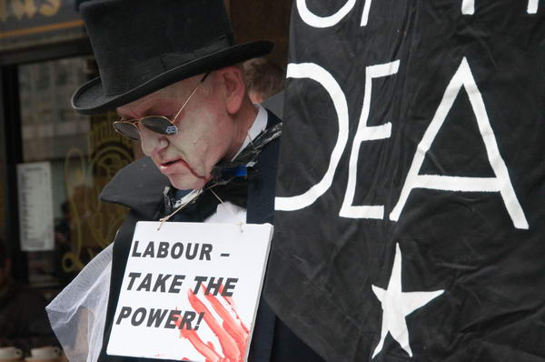 The meeting was then addressed the Political Commissar for Zombie Wrangling of the Government of the Dead, one V I Lenin, who carried a poster misquoting himself from 1918, "I want to support the 'New' Labour Party in the same way as the rope supports the hanged man", complete with a small gibbet and hanging skeleton.