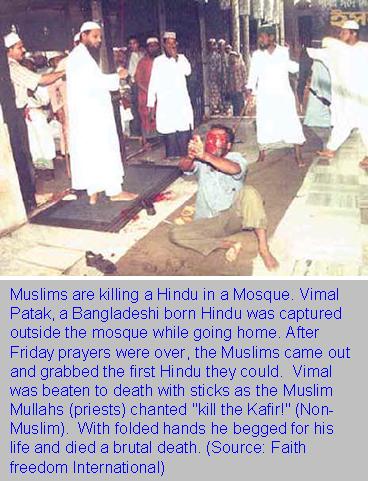 The History of Mankind had recorded many ethnic cleansing. Open the 1400 years of recorded history of Islam and blood dips from every page of it. Whatever is happening in Muslim Bangladesh is not new at all. But sadly, the civilized world has been consistently ineffective when it in combating that in a timely manner. Generally nothing is done until the dead bodies are piled too high to obscure the view of the horizon in every direction or the earth changes its color to red within any visible distance. If left unchecked, the Bangladeshi Muslims will very soon add another glorious chapter to the Islamic history, some more pages soaked with Hindu blood. This time, let us stop the genocide before it occurs.