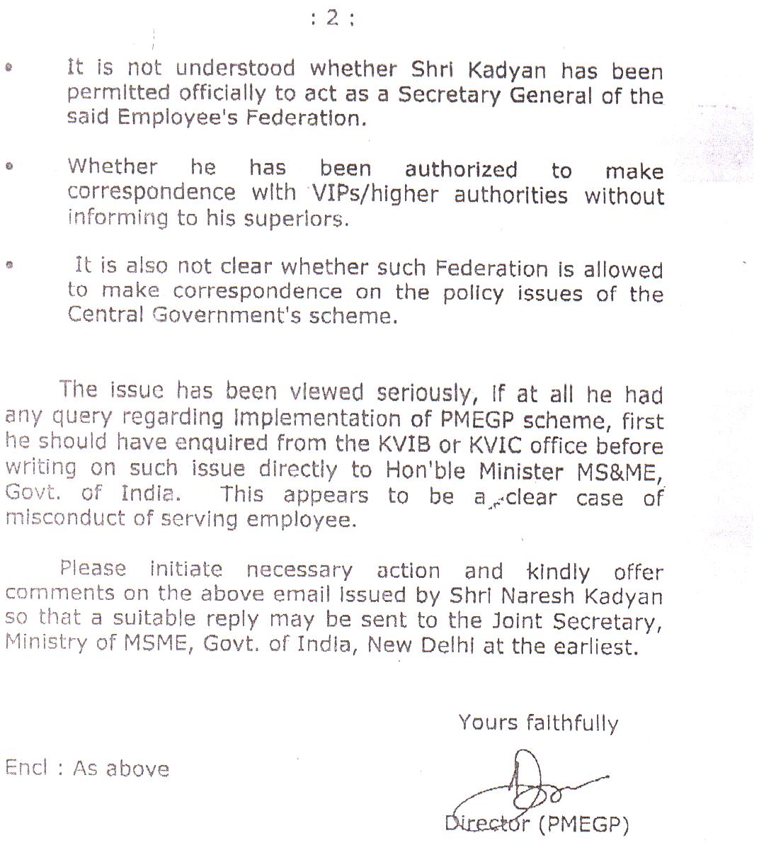 Naresh Kadyan is a press correspondent for JAGIRITI since 1995 - a KVIC publication and KVIC also promoting FEDERATION for financial assistance / aided units here in India, KVIC recognized KVIC Karemchari union then why KVIC worried about Naresh Kadyan....???????