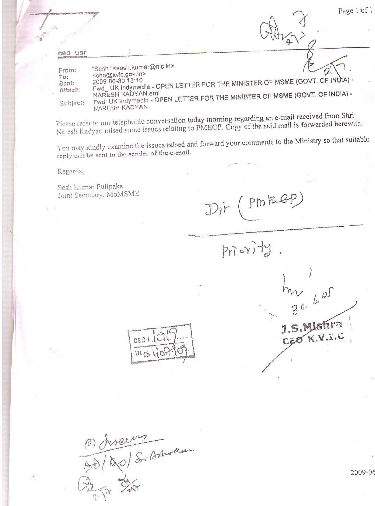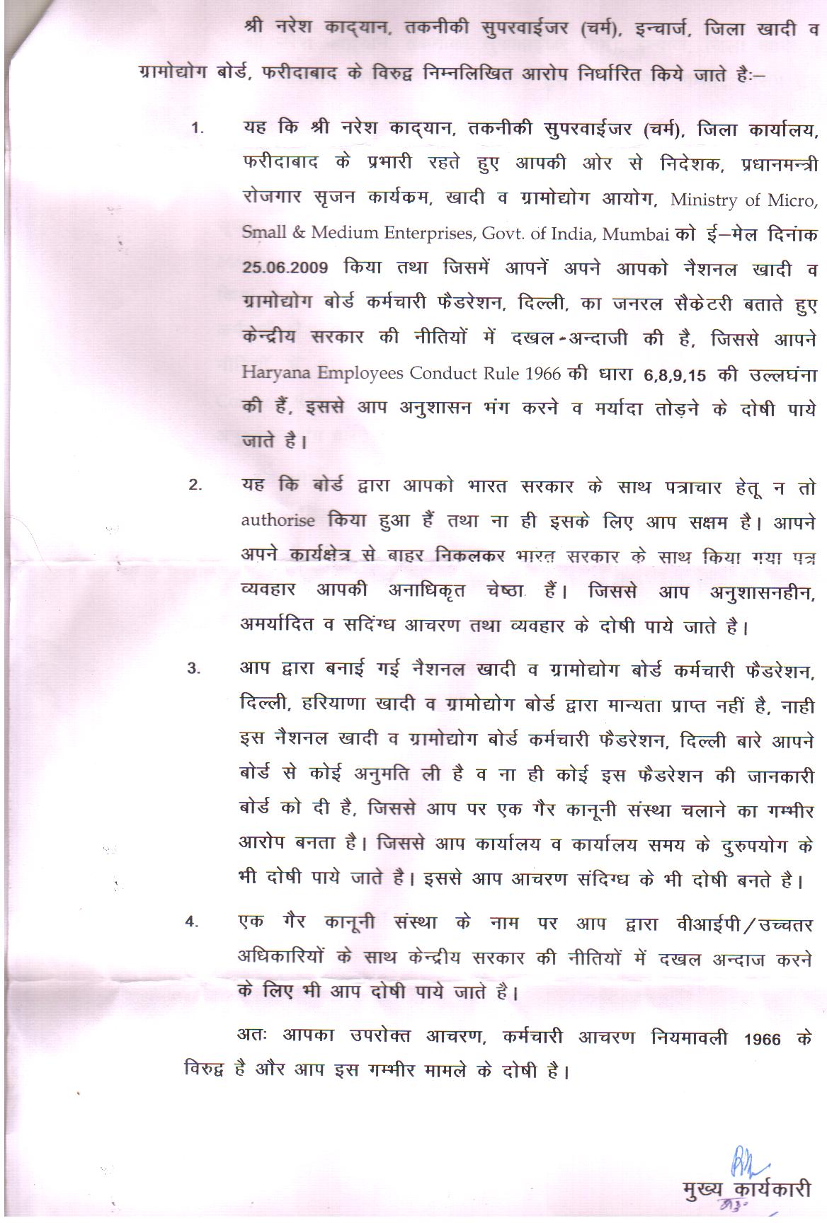 http://www.care2.com/c2c/group/pmegp News article fleshed by Abhishek Kadyan instead of Naresh Kadyan but with out confirming from Naresh Kadyan, District Khadi and Village Industries Officer, Faridabad placed under suspension by the Haryana Khadi and Village Industries Board, where as presently chief minister of Haryana Ch. B.S. Hooda then MP is the founder PATRON -