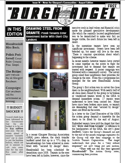the Group will take their campaign to the Scottish Tenants Organisation. The Angel understands that plans for a “very robust response” are now being put into motion. “They will rue the day they ignored Hamiltonhill!” The Action Group states, summarising their position.