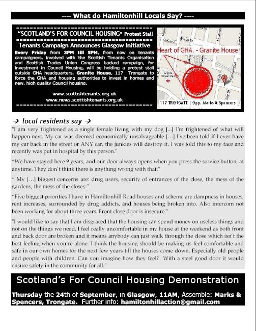 Stand Up For Public Sector Tenants; Stand Up For Hamiltonhill