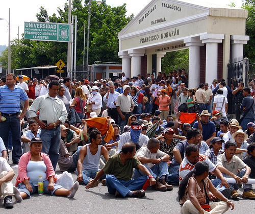 At the moment, school teachers make up the backbone of the resistance. Most of Honduras' 65,000 teachers have been on strike since the coup: recently, every week they have been on strike for two days and at work for three days. Honduran teachers have a long tradition of struggle for better conditions and free education; they played a central role in the "civic work stoppages" of 2005 and 2006.