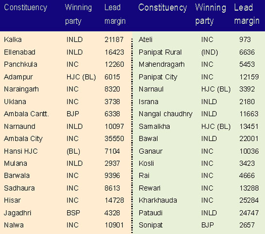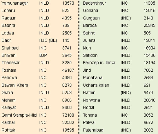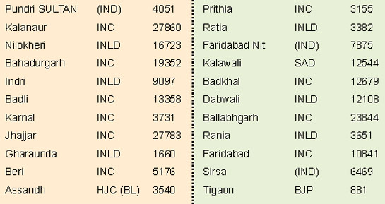 RESULTS OF HARYANA ASSEMBLY ELECTION, 2009