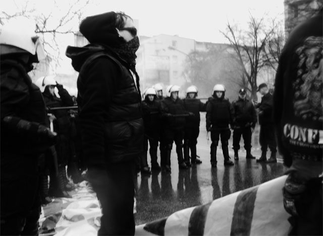 In the morning hours of the 11th November also militant antifascist actions took place. Decentralized groups of dozens of people attacked the fascists before and after their demonstration. During one of those actions the police used guns (!!!), nobody was hurt (apart from the attacked fascists of course).