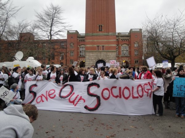 Fortunately, the staff and students of the University are fighting back. The students put on a protest rally outside the University committee that had been set up to rubber stamp the decision. The rally was attended by over 200 students and staff. The noise from the chants could be heard inside the committee and in the end the committee decided it could not make a decision. Now the decision has been sent to another committee - the one that runs the University (and is packed full of local business leaders) to have the final say over Sociology's fate. The students and staff are planning another big protest on Thursday to oppose the decision.