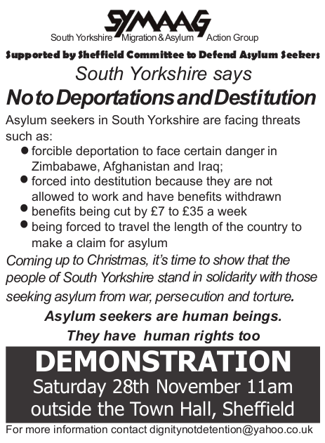 Sheffield Asylum Rights Demo: Saturday Nov 28th