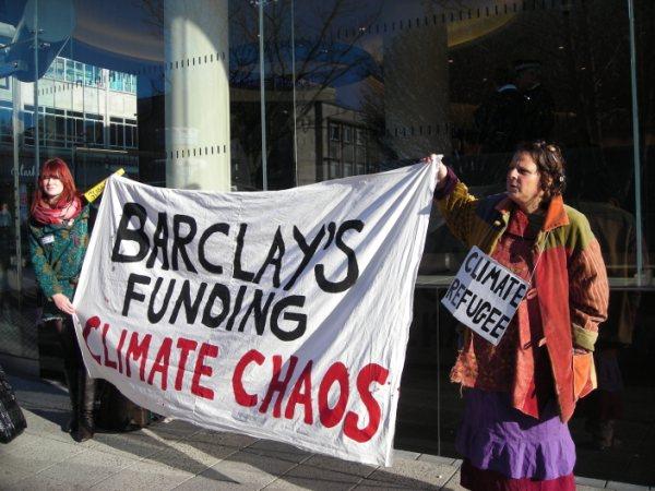 Plymouth climate refugees lock on Barclays