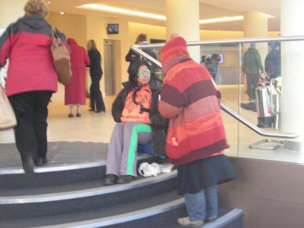 Two activists stayed locked on inside the building entrance for 2 1/2 hours chanting, singing, and informing Barclay's customers of Barclay's dodgy investments, before they were arrested. Barclays eventually closed their main entrance and members of the public were very supportive.