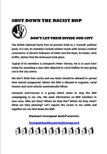 Download a PDF of the leaflet distributed by Liverpool Antifascists here:
