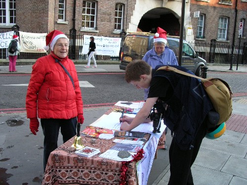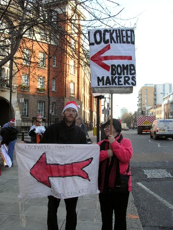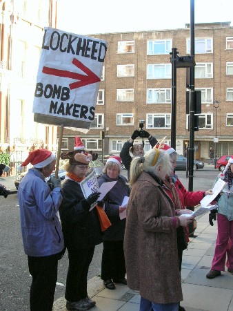 A number of people from the other companies in the building came in and out during the protest, but there was no sign of anyone from Lockheed Martin, who have offices on the second floor of Manning House, a fine example of Victorian architecture that was once the house of Cardinal Manning. Their lease comes up for renewal in around 18 months and it seems that the building's owners - and doubtless the other companies leasing offices there - will be glad to be rid of them. So next year's Christmas demonstration there may well be the last in Carlisle Place.