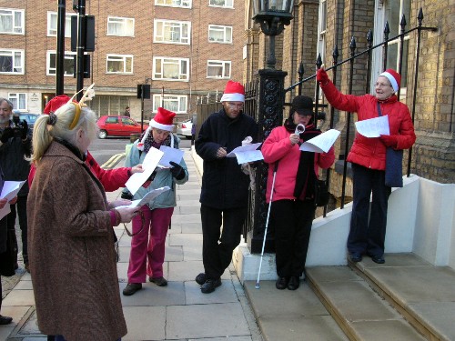 After singing all three verses and choruses of this, they went on to other anti-nuclear carols for around 15 minutes, while one of the protesters with a Santa mask and a 'weapons inspector' white suit lay on the pavement in a black plastic body bag.