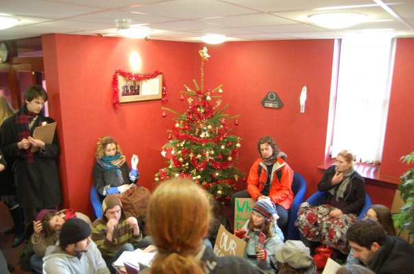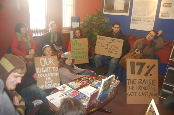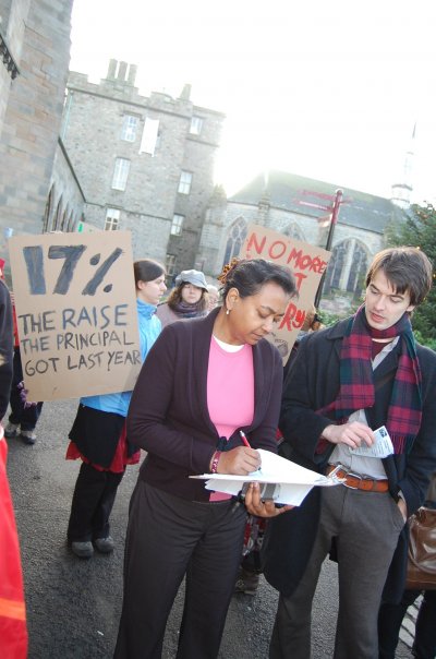 The whole group of people present was ushered into a meeting room to discuss our concern with the aptly named vice-principal for research and commercialisation met with us and engaged a one and a half hour meeting where all our anger, concerns, experiences and fears were presented to the vice principle who in all fairness was responsive and noted down all our key demands and arguments to be presented before the next management meeting and to the principle himself. All in all the day was a success considering the infancy of the group. The ball is in the universities court now as we have made our demands heard and taken it to the top of the university system. However it is no justification for feel good complacency as the University formulises its response. The struggle to keep education open to all and defend staff’s jobs will be an ongoing one, especially in this neo-liberal crisis. We recognise this as a wider struggle that will inevitably affect all public education from primary to University level which means branching out, to include primary and secondry schools.