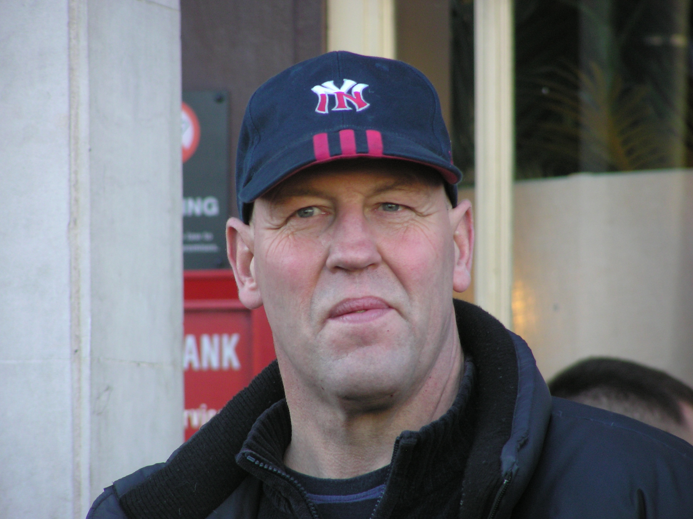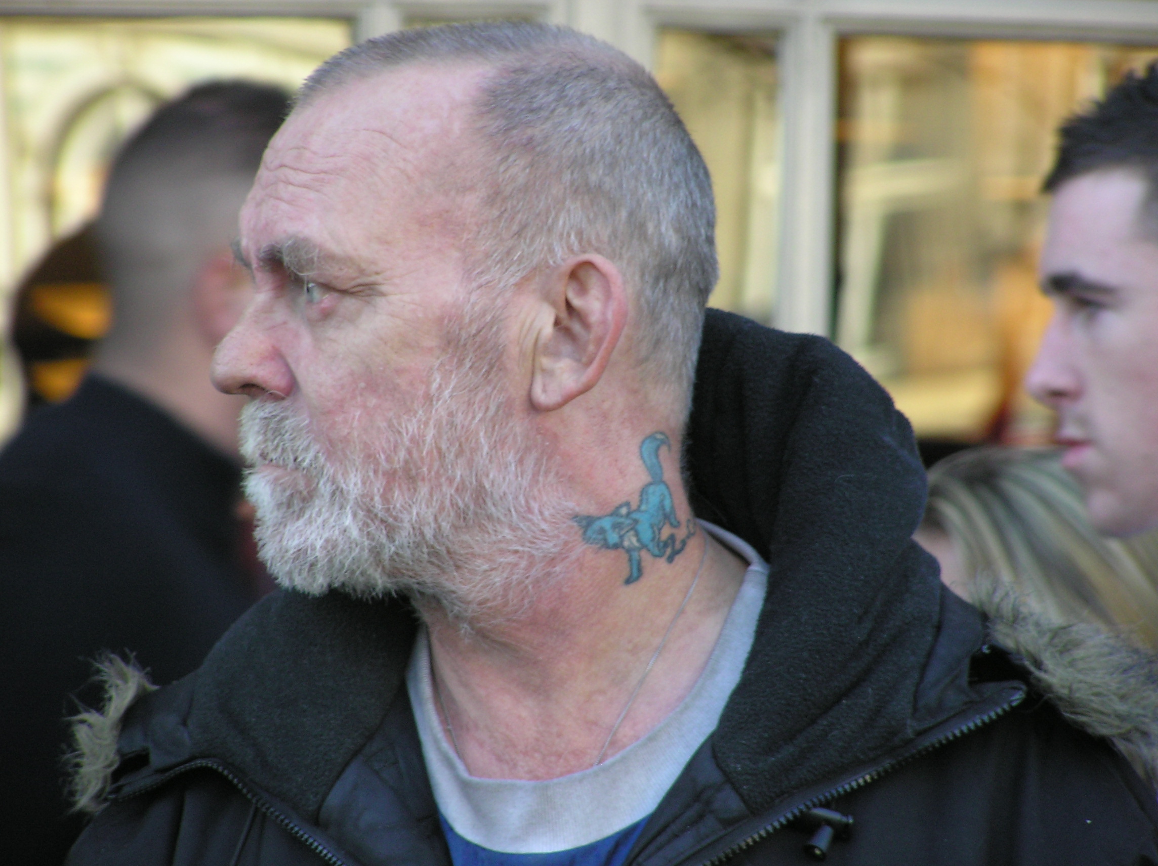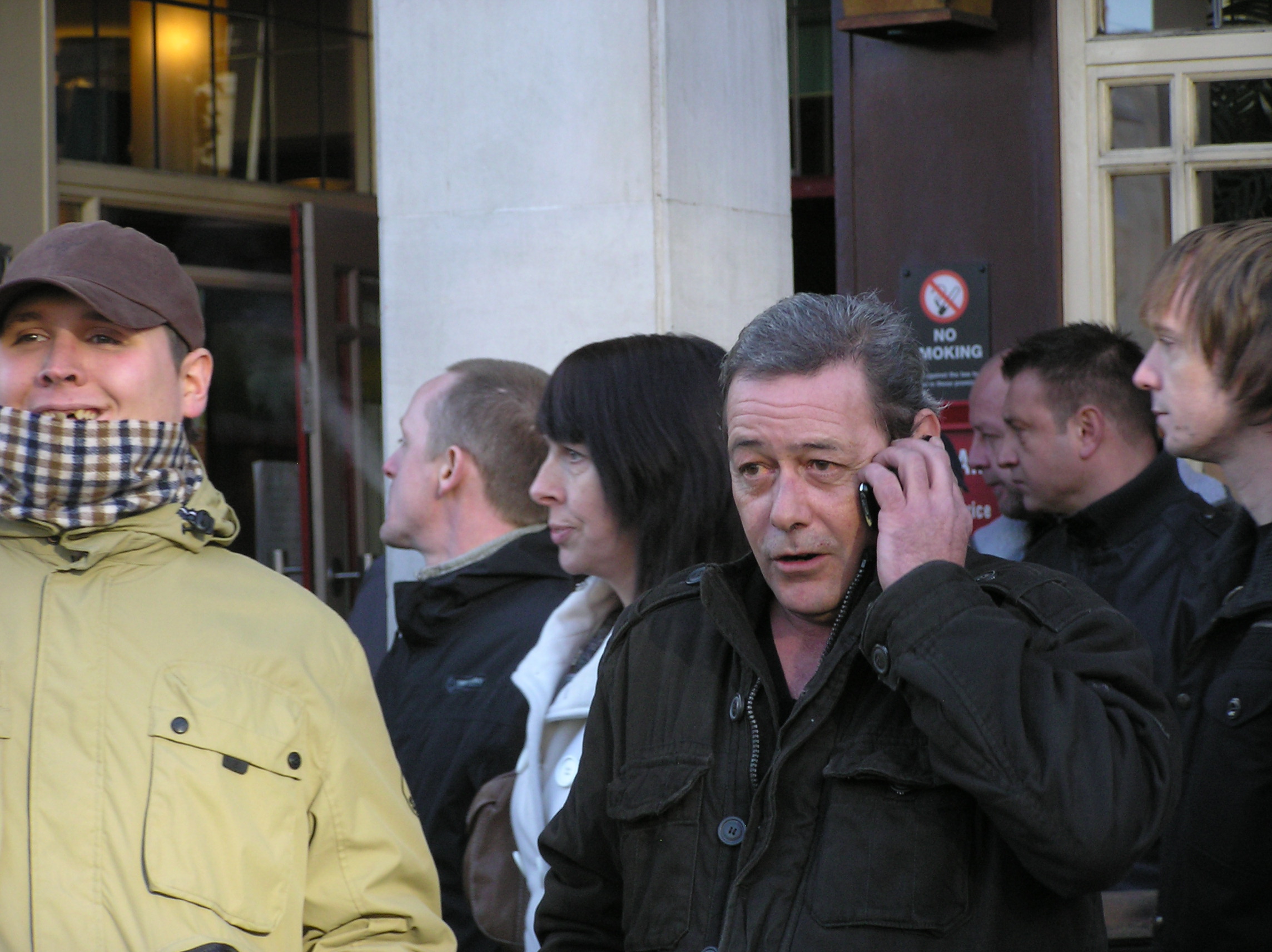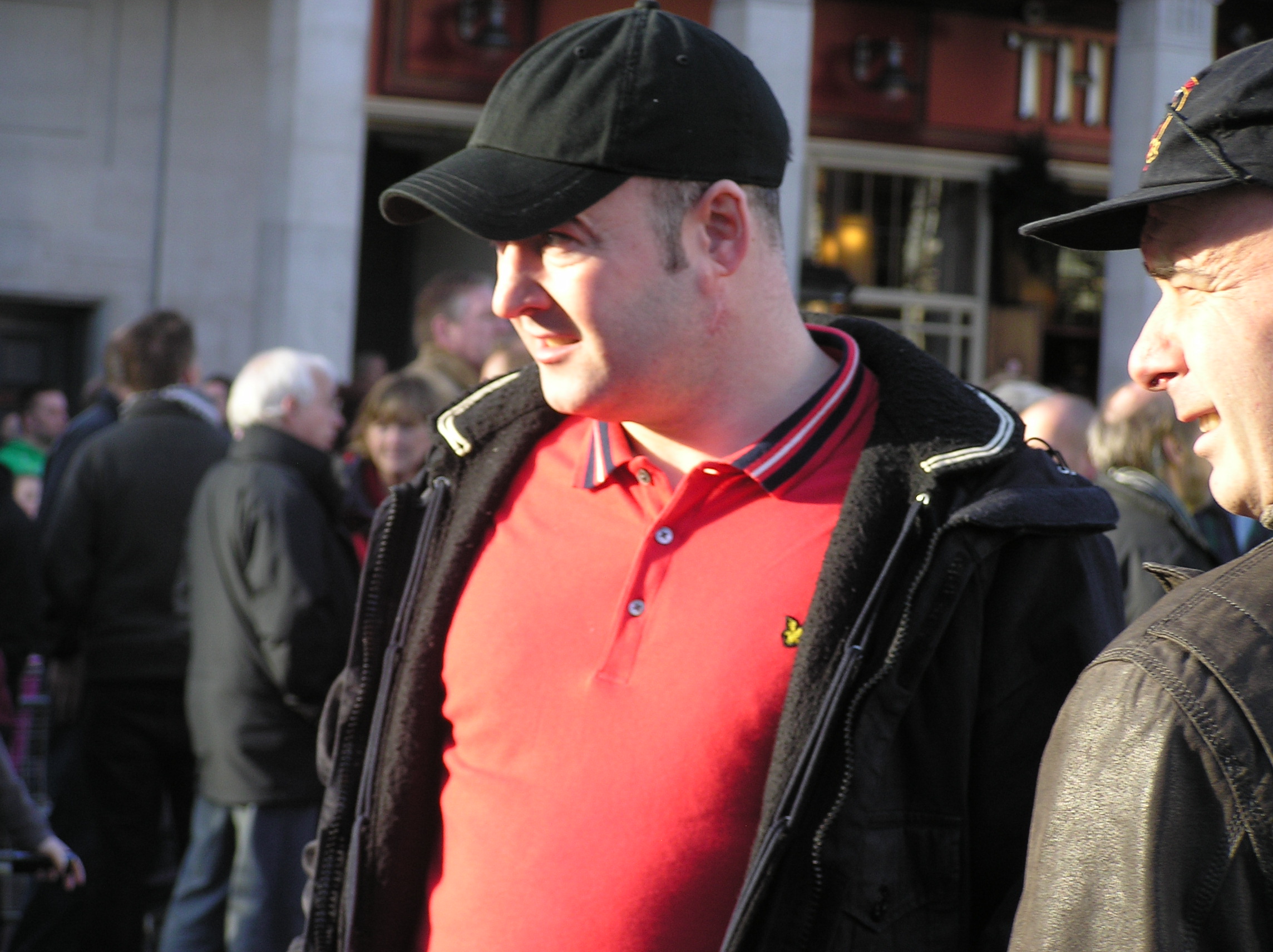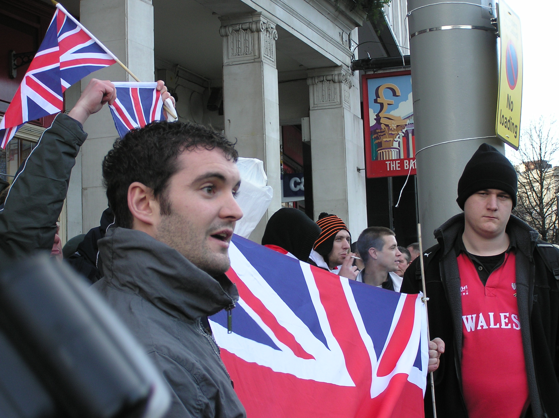 Yes, he's put Combat18 on his flag, and he brings with him twelve or more Lincoln soccer hooligans to every racist march so he's not gonna vanish into the mist.