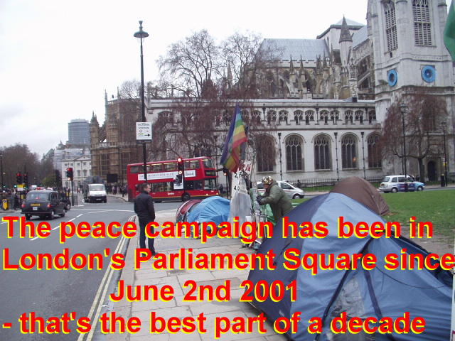 The peace campaign in Westminster's Parliament Square has been now been running for over 8 and a half years – the best part of a decade.