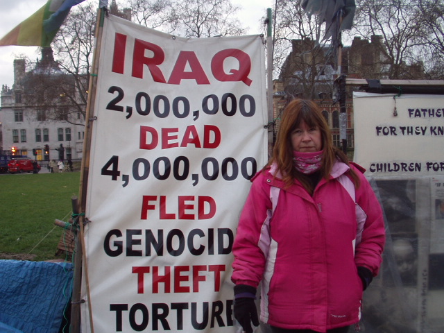 Brian Haw was joined in 2005 by a British Australian lady from Melbourne called Mrs Barbara Tucker. A pleasant lady in her 40’s with two grown up sons she has travelled around the globe and lived in various parts of the world including California, Egypt, New Zealand, Israel, the Gaza Strip, and most European countries. She was brought up in the south eastern Melbourne suburb of Glen Waverley near the renowned Channel 10 studios. This is where many famous Aussie TV series such as `Neighbours` and `Prisoner` which aired under the title `Prisoner: Cell Block H` in the UK and the United States, and `Caged Women` in Canada were filmed.
