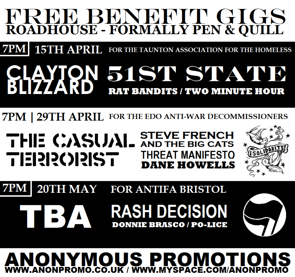Free Benefit Gigs in Taunton: TAH / Decommissioners / Bristol Antifa