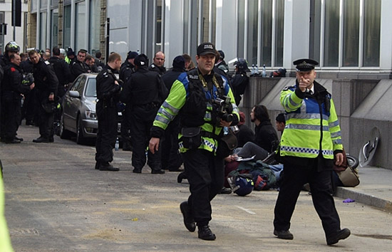http://www.channel4.com/news/articles/uk/met+police+to+pay+g20+protest+compensation/3587057 "Police burst into the Convergence Centre in east London carrying taser guns, and handcuffed protesters face down.