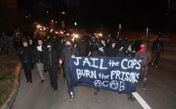 "Cmdr. Tor Bjornstad said Friday that officers were monitoring about three-dozen people dressed in black, wearing masks and calling themselves anarchists. The group started marching downtown about 7 p.m. Thursday, chanting obscenities at the police.