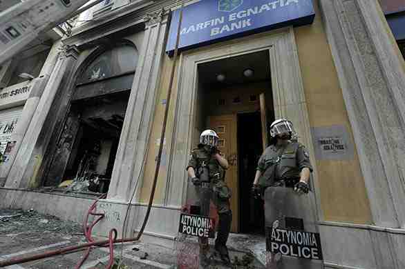 The day before the 2010 The UK General Election Greek protesters riot in Athens..