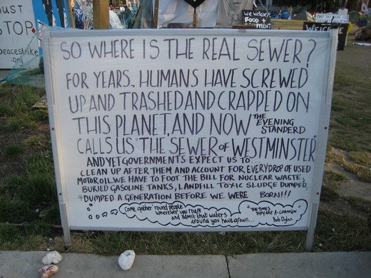 Democracy Village protesters (arrving slightly later) can be seen blocking the road. A couple Stwc activists joined them before retreating to the police designated area. Shortly after,Democracy Village protestors returned to the camp on Parl sq having made their point.