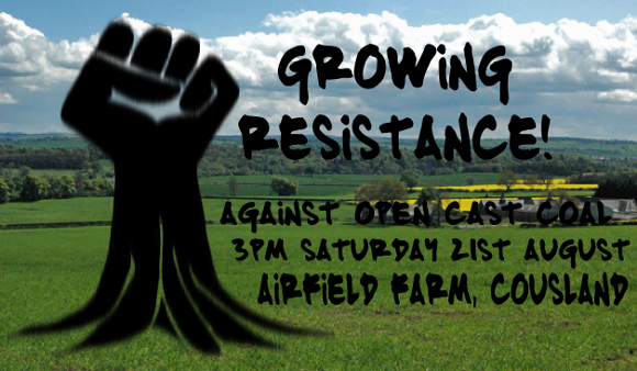 We will have information from Coal Action Scotland and the Coal Action Network, speakers from the local community and other communities in Scotland plagued by the coal industry and a tour of the land under threat. There will be a bike caravan setting of from Climate Camp, via Edinburgh, arriving about 3pm, and minibus shuttles from Climate Camp and the nearby town of Dalkieth. For travel directions see here.