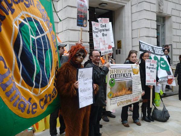 Demo outside DECC against subsidies for agrofuels