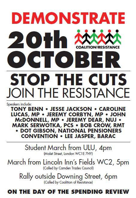 Marches will join the Coalition of Resistance Rally at Downing Street