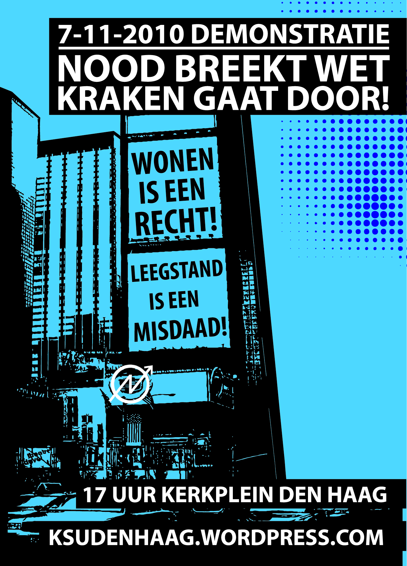 On November the 7th 2010 a demonstration against the law on squatting will be held in The Hague. This law, enacted on the first of October 2010, effectively makes all the squatters in the Netherlands a criminal.