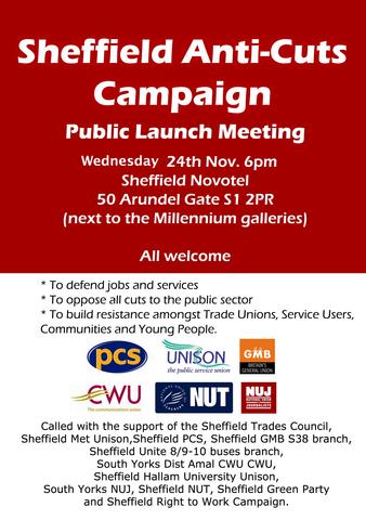 Launch meeting of Sheffield Anti-Cuts Alliance: 24th November