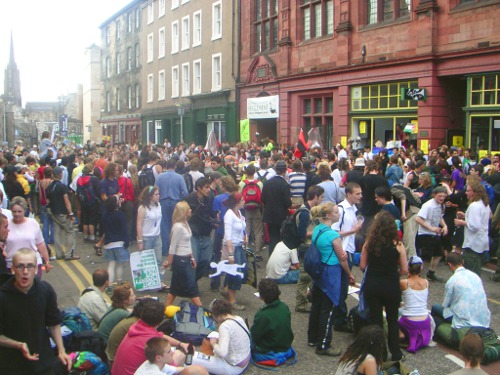 Now the Forest Art and Event Space collective is running a fundraising campaign [ info pdf] to buy the building [ Ryan's report]. The Forest Art and Event Space started in 1999 in a small shop at the Grassmarket primarily as a collective of artists, but quickly became much more. It hosted a street party and the Independent Media Access Centre during the G8 protests in 2005 as well as supported grassroot political film screenings [Dan's account] and events such as the Argentina Autonomista Tour, activities around the "Smash Nato" protests, Painting with the Zapatistas, The Lost Film Festival, Food Not Bombs and much more such as punk gigs, feminist, video activism and climate change weekends.