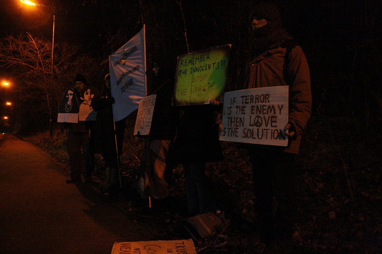 Catholic Worker Farmhouse Crew Midnight Vigil outside Northwood HQ, London