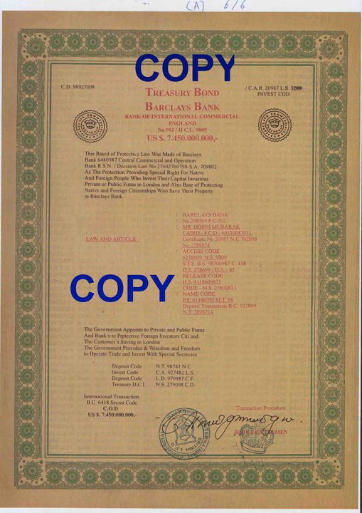 Τhe wealth of Mubarak ... "threasury bond , Barklays Bank" ..
