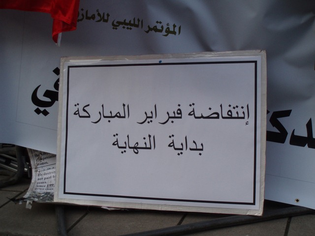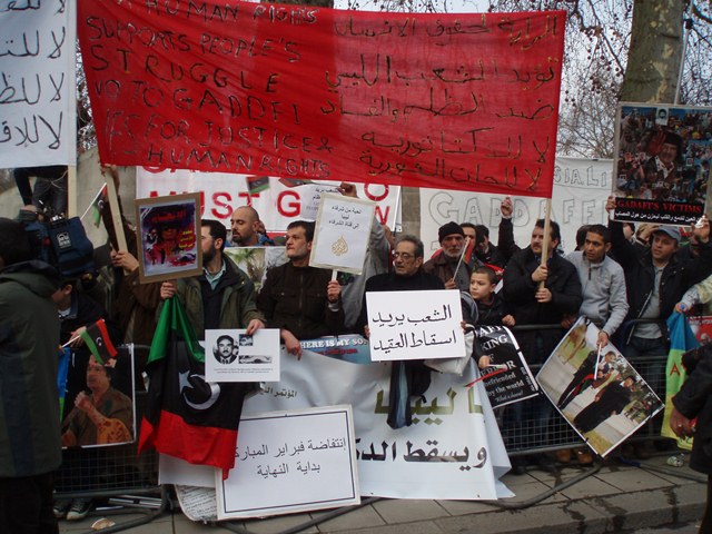 http://www.hrw.org/en/reports/2006/06/28/libya-june-1996-killings-abu-salim-prison). A solidarity protest was held outside the Libyan Embassy in Knightsbridge, London, this afternoon at 1-4pm. As with the protests in Libya itself, there were both pro- and anti-regime demonstrations held at the same time.