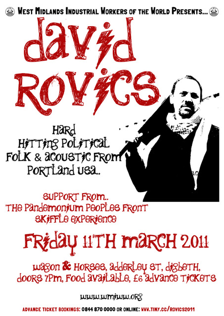 http://www.theticketsellers.co.uk/tickets/david-rovics/10014621 At the Wagon & Horses, Adderley St, Digbeth:-