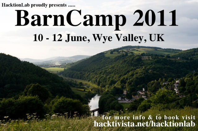 https://registration.hacktivista.net 2011 will mark the forth BarnCamp convergence at Highbury Farm in the Wye Valley (Wales) where people interested and/or working in the areas of alternative media, renewable energy, on-line video distribution, free software and any other form of activism that utilises technology came together to share and discuss. Based on feedback from the previous years, we are deliberately continuing to keep this year's camp less geeky than the previous years by having a more open range of workshops and open space sessions, but we are also inserting an extra day to allow for more, longer workshops - some of which might be geeky!