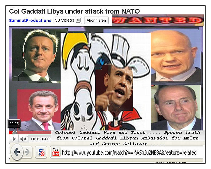 http://en.m4.cn/archives/14134.html Picture: Video - Colonel Gaddafi Viva and Truth..... Spoken Truth from Colonel Gaddafi Libyan Ambasador for Malta and George Galloway ..............