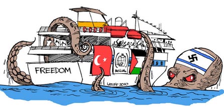 Zionazi stormtroopers brutally bundle bound flotillards aboard prison ship