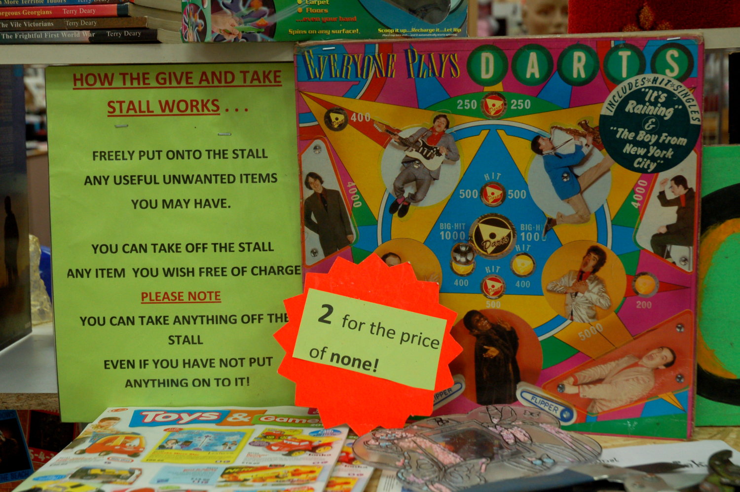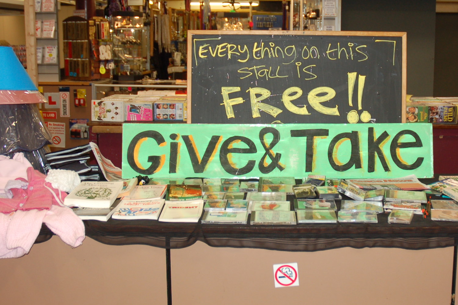 Take your donations of unwanted but useable stuff to the free stall any time during market opening hours, or just turn up and see what you can find to take. Why not start a stall of your own? Increase the sharing.