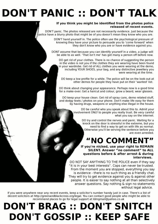 Please everyone, keep safe and take the fight to our real enemies. Don’t get caught, and if you do, say ‘no comment’.