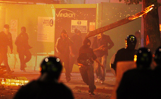 FFS, get some perspective ... if this were political, then what do trainers and plasma tvs have to do with politics? The "anarchists" just want to gain some notoriety by jumping on the bandwagon of looters, thieves and now murderers, when the thugs themselves are just having a laugh at how all the lefties are wringing their hands trying to explain the violence as having economic and political roots. Crack down on these thugs, arrest them and charge them ... now we the tax payers have to pay for their damages, have to clean up their mess, have to rebuild lives and businesses - how about they show some solidarity with us and give themselves up?