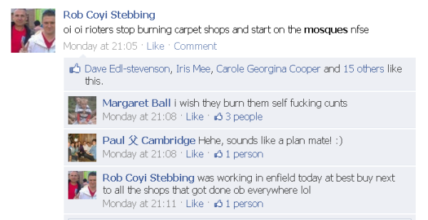 The EDL have got nothing whatsoever to do with any of this. The riots break out and when its all over and there's nothing more to see, only then do the EDL come out of hiding to "defend the country".