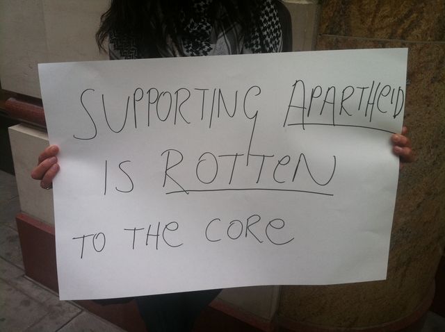 http://www.bdsmovement.net/call - This action was taken in memory of Simon Levin, lifelong campaigner for justice in Palestine, who died earlier this year - to read about Simon see