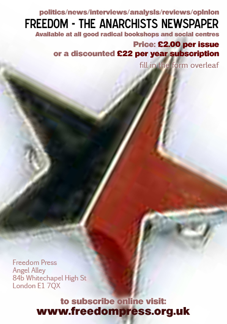 As well asking people to contribute creatively to the paper we also need to be able to promote, sell and distribute Freedom. This could be done in a variety of ways from the very simple things - linking to, and forwarding on, articles from the website, or suggesting places that would stock the paper, to actively selling the paper in your area, on demonstrations, at events or in your workplace.