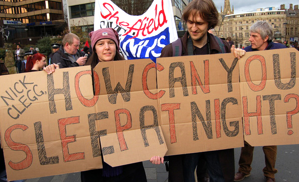 The local paper, the Camden New Journal, reported that Alexis Rowell's resignation letter told Nick Clegg that "I'm still shocked by the fact that you signed the bill to privatise the NHS, by the draconian front-loaded cuts to local government, by the free schools policy, by the virtual abandonment of state-funded higher education, by the lack of any action on banker bonuses... and by the decision to fully privatise the Royal Mail... and a host of other free-market policies... which I didn't vote for". Of course Nick Clegg doesn't give a flying fuck about the damage his collaboration is inflicting on his own party, because, as a former employee of hard-line Tory Leon Brittan, Clegg's real loyalties always were to the Tories anyway; and with typical hypocrisy, the winning Labour candidate Sally Grimston stressed her task is to "challenge health service reforms", despite the fact that many NHS services were cut and privatised under New Labour.