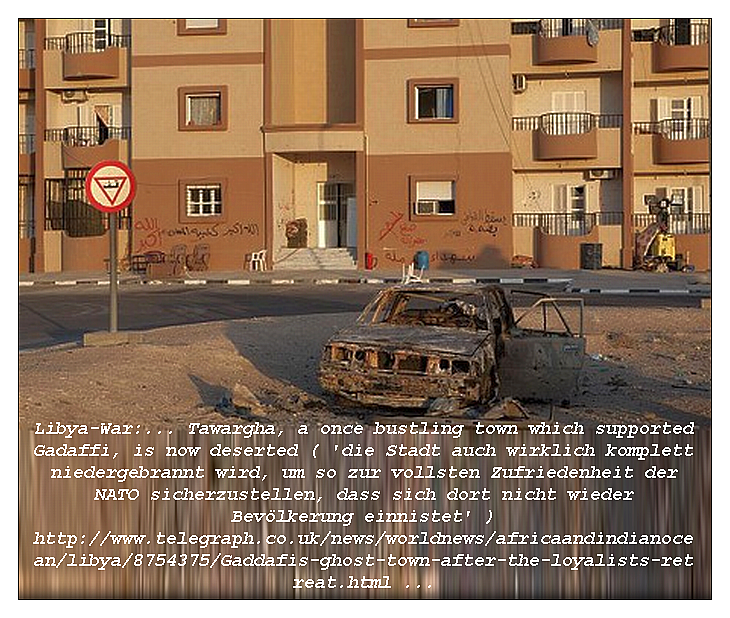 http://nocheinparteibuch.wordpress.com/2011/10/03/nato-setzt-terrorkrieg-gegen-libyen-unvermindert-fort/ Picture: Tawargha, a once bustling town which supported Gadaffi, is now deserted