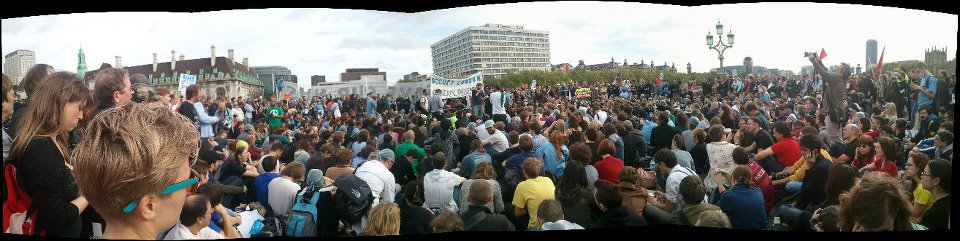 – We’re coming to an end of this General Assembly. At the first general assembly in wall street there were 70 people. Now there are tens of thousands. We are already more than 70, so let’s do this in the UK! Occupy London!