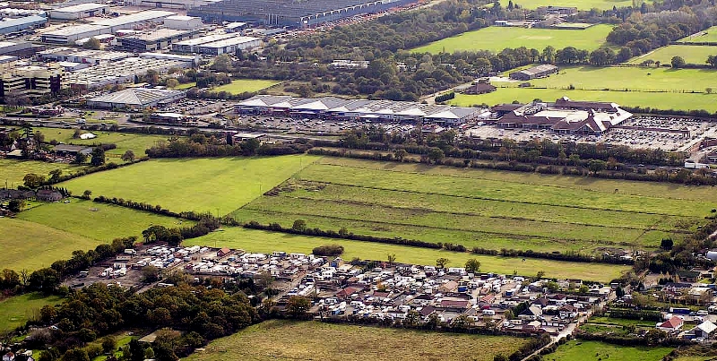 This image shows at the bottom the traveller Dale Farm site which has not been extended beyond the perimeter that you see here. The site is pretty much the same now as it was back then, although recent images do appear to show some depopulation. You can also see at the top, large-scale development including a retail park, sports playing field's, and in the top right hand corner, a large industrial park containing factories, businesses and some large international corporations. The rent paid by these businesses and corporations is way and above enough to help find the travellers a place to go. The dividing line between these developments is the A127, a very busy arterial road that runs from London right through to Southend on Sea. It is one of the busiest arterial roads in England.