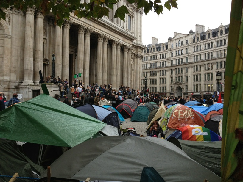 The protest has become increasingly fraught, mostly on the church’s side, as the Cathedral was closed then reopened and legal steps to remove the protesters started last week. The church’s astonishingly poor handling of the affair was underlined by the resignation of canon Giles Fraser. Cathedral chaplain the Reverend Fraser Dyerhas also stepped down in protest at the decisions made by the Dean.